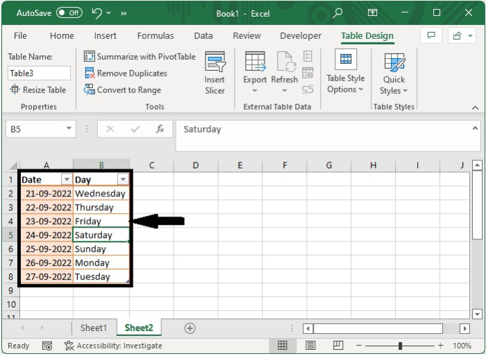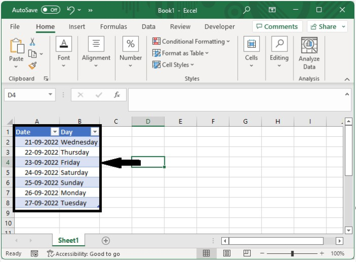 要插入表格,請選擇資料,單擊“插入”,單擊“表格”,然後選擇範圍,我們的表格將成功建立,如下面的影像所示。