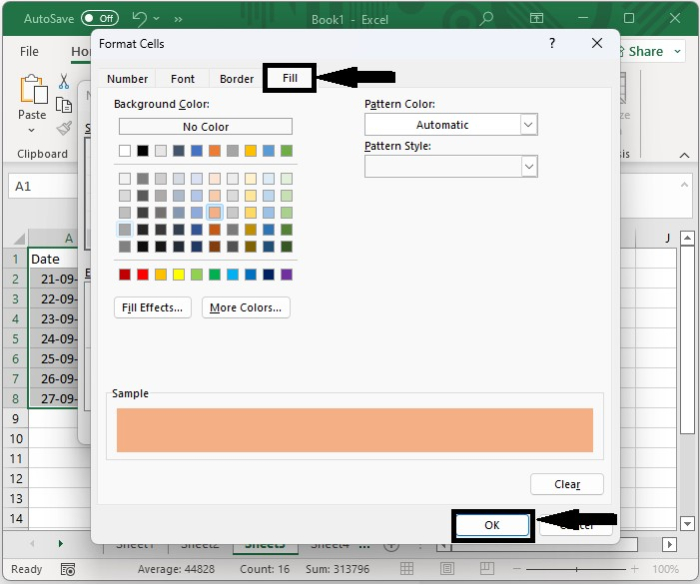 然後,單擊“填充”,選擇要使用的顏色,然後按兩次“確定”。
