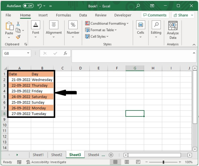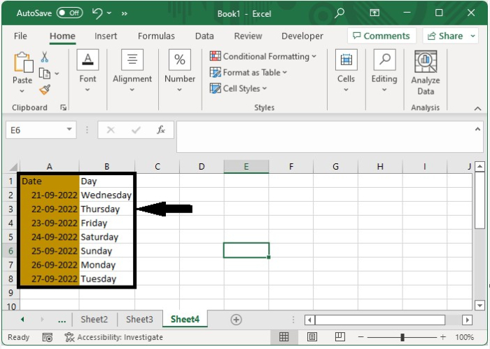 讓我們考慮一個Excel表格,其中資料類似於下圖所示的資料。