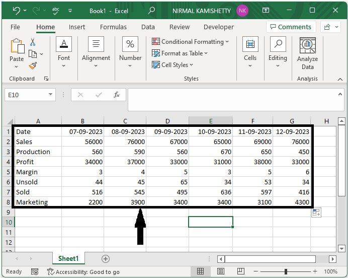 讓我們考慮一個 Excel 表格,其中資料類似於下面工作簿中顯示的資料。