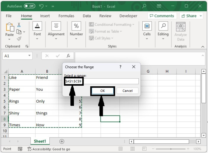 現在單擊 F5 執行 VBA 程式碼,然後在彈出視窗中選擇要合併的區域,然後單擊“確定”。我們的最終輸出將如下面的圖片所示。