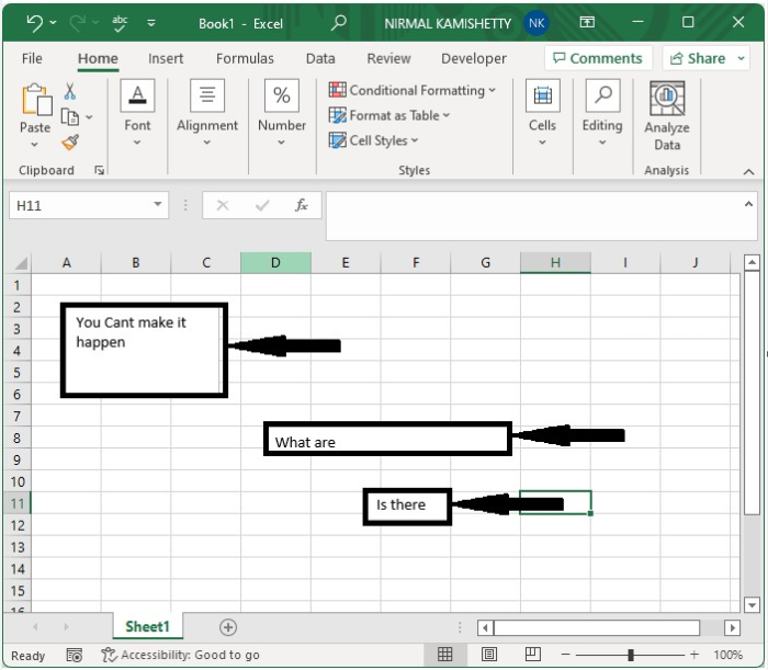 讓我們考慮一個包含文字框的 Excel 表格,如下圖所示。您可以透過單擊“插入”下的文字並繪製框的大小來插入文字框。
