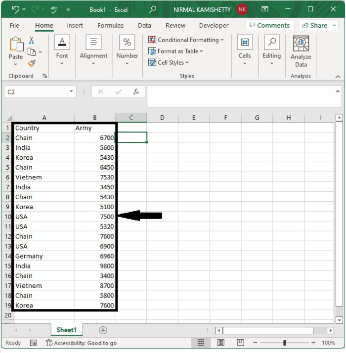 考慮一個包含類似於下圖所示資料的Excel工作表。