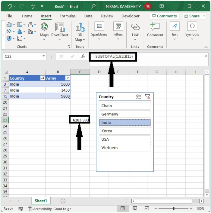 在這裡,我們將首先建立表格,然後插入切片器並使用SUBTOTAL公式來完成任務。讓我們來看一個簡單的過程,瞭解如何在Excel中計算篩選單元格或列表的平均值。