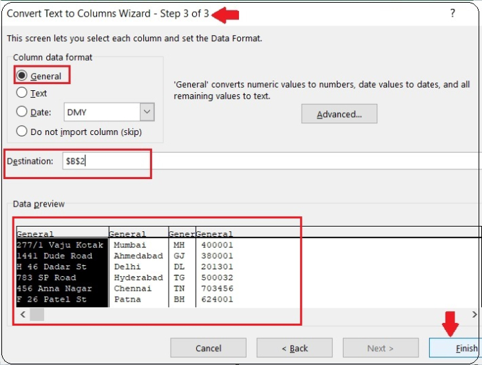 在本教程中,我們使用了一個簡單的示例來演示如何使用“文字到列”將地址分解或拆分成獨立的部分。