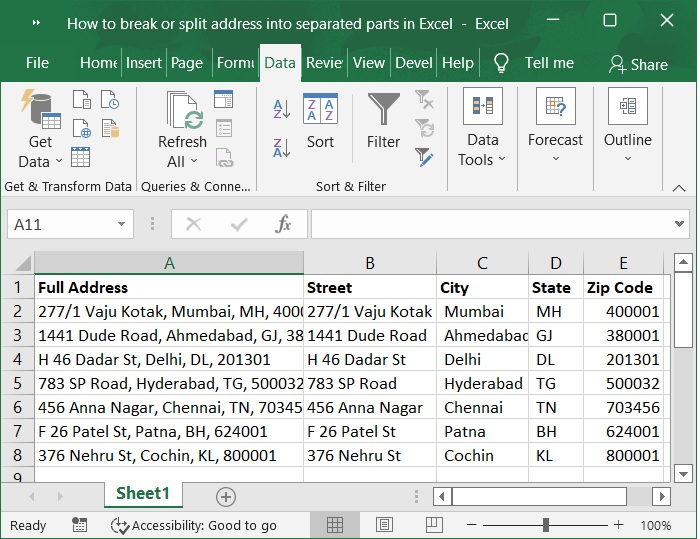 本文將指導您完成使用Excel將多個地址分解或拆分成其組成部分的必要步驟。
