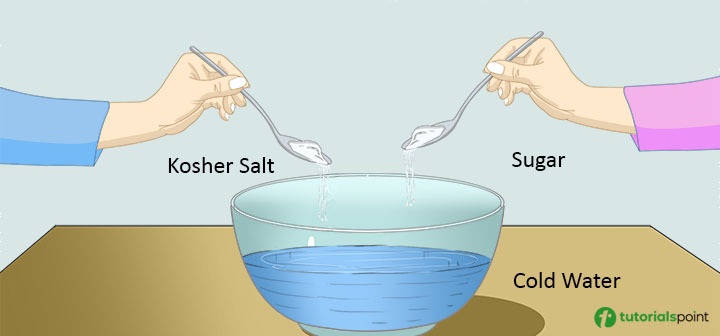 步驟 1 − 將猶太鹽、糖和冷水混合在一個大鍋或容器中,直到鹽和糖完全溶解。