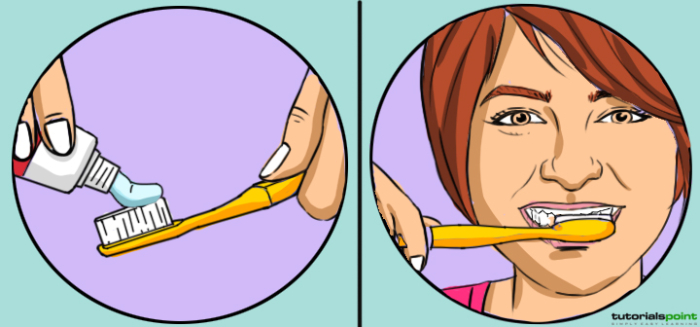 關於牙膏,使用推薦含氟量的牙膏。氟化物使牙釉質更強壯並去除牙菌斑。避免吞嚥氟化物。小孩子最好不要使用。牙膏廣告突出顯示了蛀牙和敏感性、牙結石和牙齦問題。對抗汙漬和牙齦炎的牙膏是其他選擇。