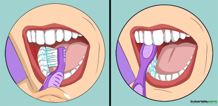 舌頭也需要用同樣的刷毛輕輕刷。刷舌頭可以去除每天沉積的細菌並防止口臭。內頰也需要短暫而輕柔地刷洗。