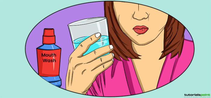 日常漱口完成口腔護理。每天刷兩次牙,使用一次牙線,漱口一次。要做的事情很多,但回報也很多。用清水稀釋的漱口水漱口並漱口。