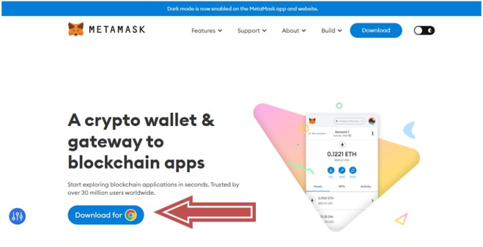 **步驟 1** - 訪問https://metamask.io/或在谷歌上搜索 Metamask,點選 Metamask 官方網站,然後點選 Chrome 下載。