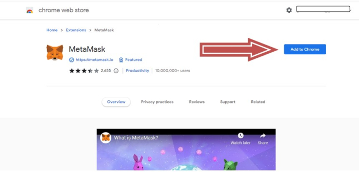 **步驟 2** - 當您點選 Chrome 下載時,它會將您帶到一個谷歌擴充套件程式頁面,您可以在其中新增 Metamask 的擴充套件程式。