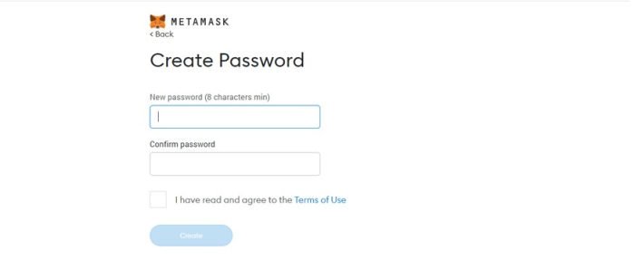 **步驟 5** - 輸入一個新密碼,然後再次輸入以確認相同的密碼。完成後,點選**使用條款**框,然後點選**建立**。