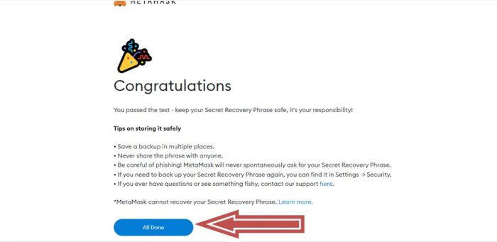 **步驟 6** - 現在,恢復短語將顯示在您的桌面上,如果忘記憑據,它可以幫助您恢復賬戶。
