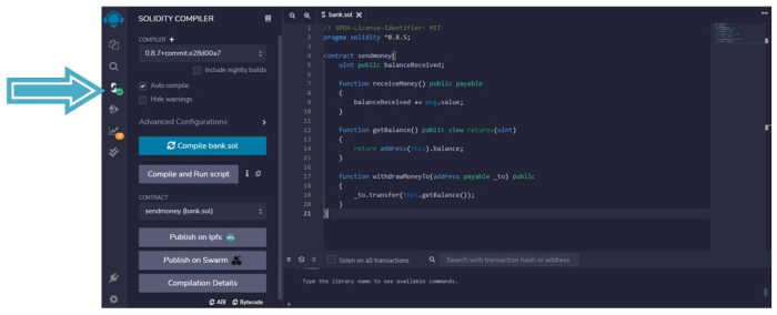 **步驟 4** - 完成編碼部分後,必須對其進行編譯。在左側欄中提到了帶有圖示的編譯器選項卡。