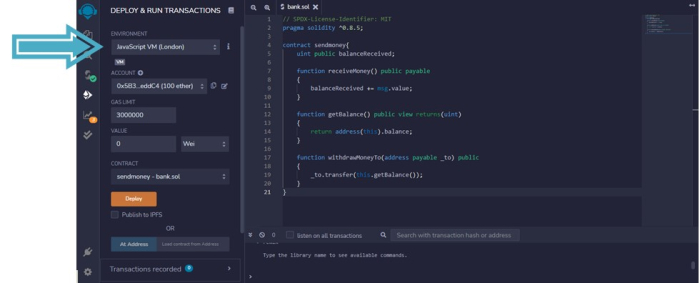 選擇環境為 Javascript VM(London),如下面的影像所示 -
