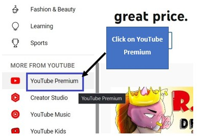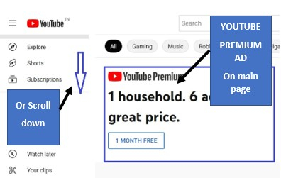 步驟 1 - 開啟 YouTube。如果您幸運的話,可以在主頁上看到 Premium 廣告。否則請向下滾動到左側。