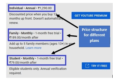 如果您一次性購買年度套餐,可以節省一部分訂閱費用。YouTube Premium 的年度訂閱費用為 1290 盧比,這意味著兩個月的訂閱是免費的。您只需支付十個月的費用。