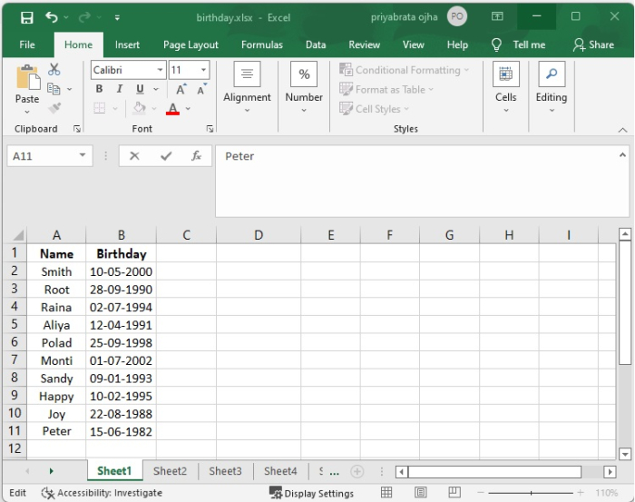 在本教程中,您學習瞭如何在Excel中使用**DATEDIF**和**YEARFRAC**方法根據生日計算一個人的年齡。