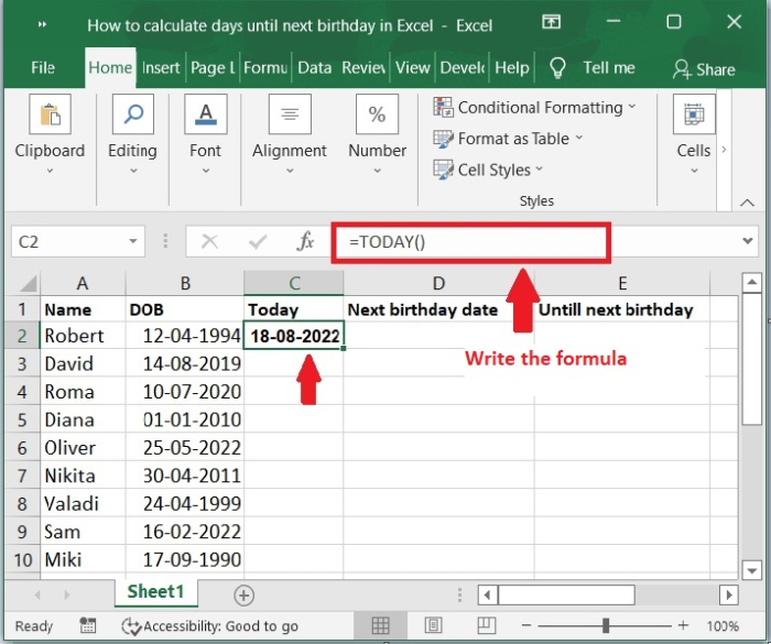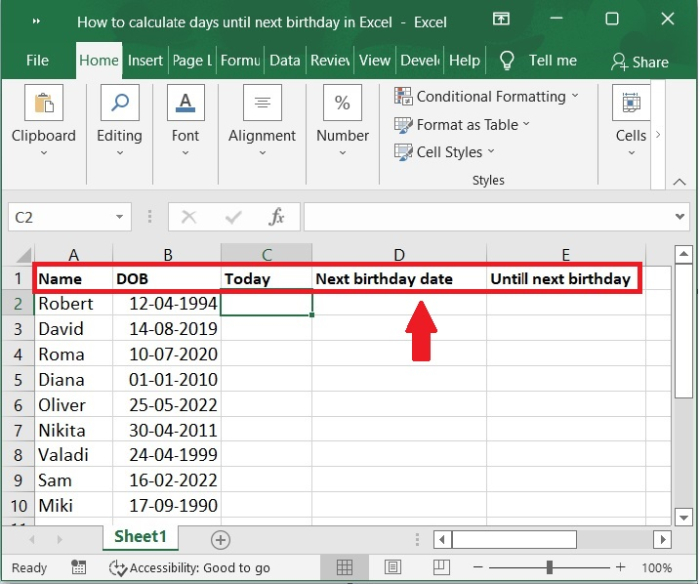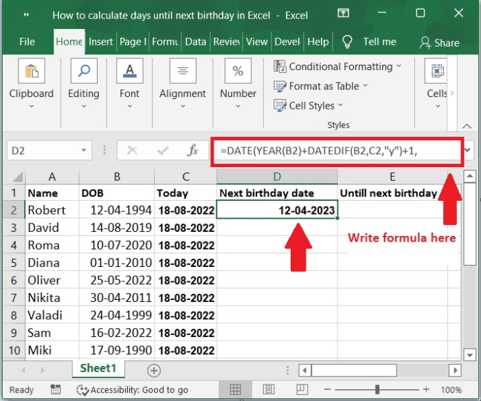 如果您對此感興趣,您將如何計算距離您下次生日還有多少天?實際上,如果您正在使用Microsoft Excel倒計時到您下次生日,您可以利用工作表公式使此過程更加簡單。