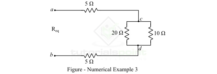 可以觀察到,在給定的網路中,電阻器是串聯組合的。因此,它們的等效電阻將為: