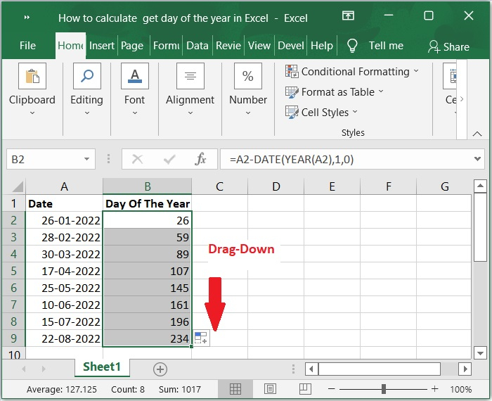 在本教程中,我們使用了一個簡單的示例來幫助您瞭解如何透過在 Excel 中使用簡單的公式來計算或獲取一年中的第幾天。