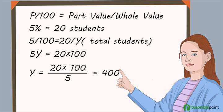 例如,如果一所大學中5%的學生等於20名學生,那麼總的班級人數是多少?它將是5/100=20/Y或20/0.05,得出400名學生。