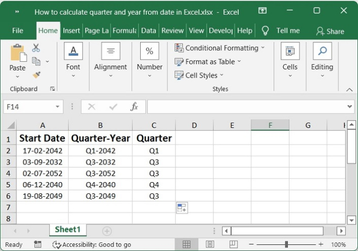 如果您經營一家公司或幾乎任何其他領域,您可能會發現自己經常需要知道某個日期屬於哪個日曆季度。遺憾的是,Excel 沒有一個可以根據指定日期生成此資訊的函式。我們可以使用這種方法將任何給定日期轉換為日曆季度。