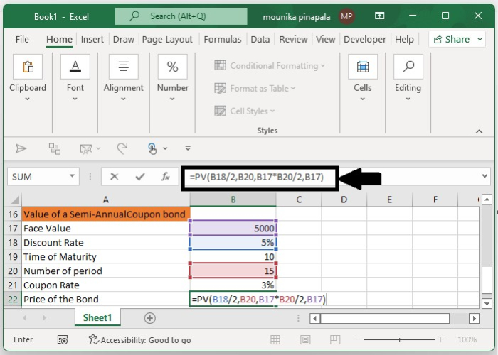 有時,債券持有人每年可以獲得兩次利息。要計算這種情況下的債券價格,請按照以下步驟操作:
