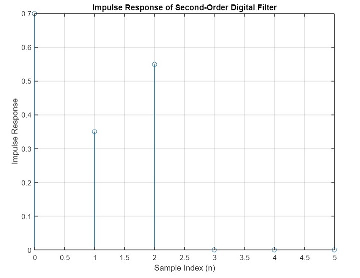 stem(n, h); title('Impulse Response of Second-Order Digital Filter');