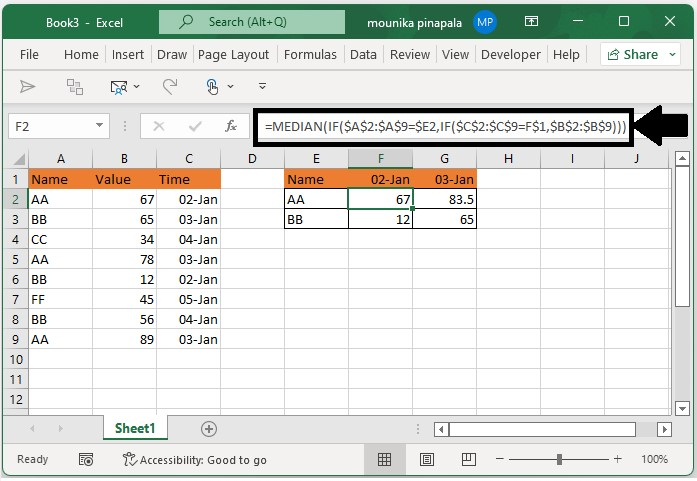 在上面的螢幕截圖中,你可以找到 AA 和 BB 姓名在 2 月 1 日和 3 月 1 日的中位數值。