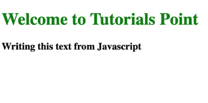 <!DOCTYPE html> <html> <head> <title>Calling JavaScript function in HTML</title> </head> <body> <script> function display() { document.write("<h1 style='color:green;'>Welcome to Tutorials Point</h1>"); document.write("<h3>Writing this text from Javascript</h3>"); } display(); </script> </body> </html>