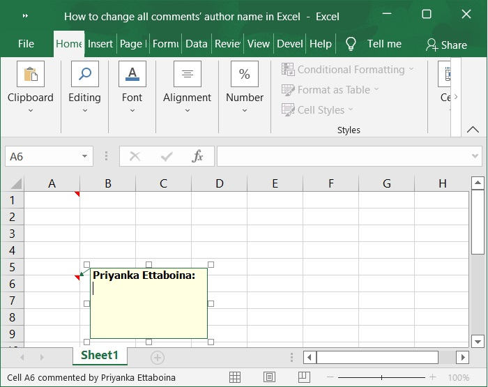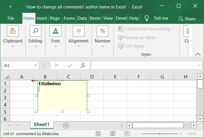 本教程將指導您完成更新與 Excel 中單元格批註關聯的作者姓名的必要步驟。如何快速更改當前開啟的工作表中所有批註的作者姓名?假設您希望更改當前正在處理的電子表格中所有批註的 Excel 作者姓名,並且您希望修改 Excel 中所有已存在批註的作者姓名。