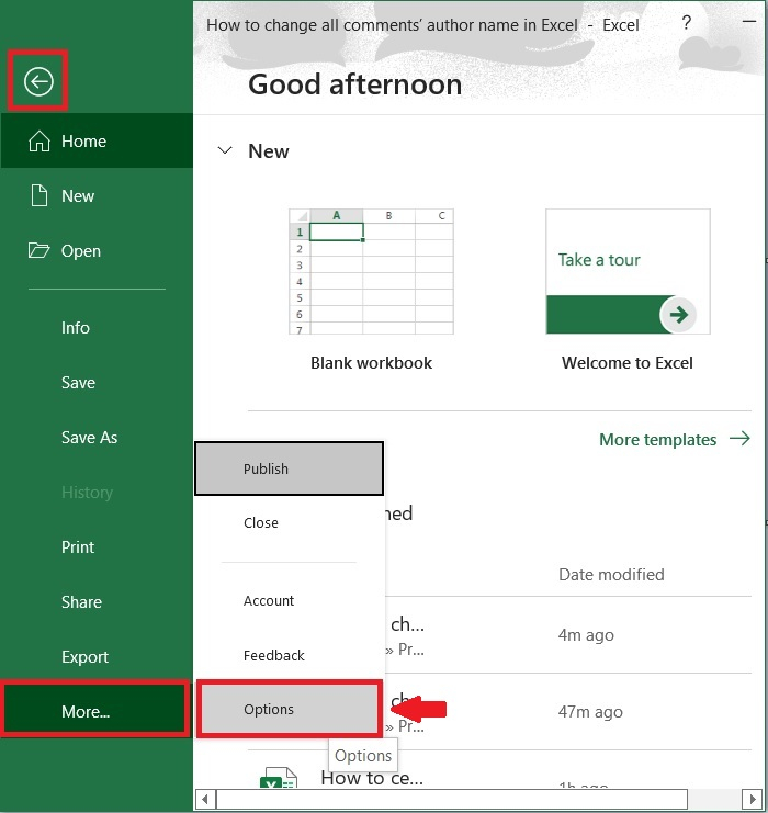 您可以更改 Excel 使用者名稱來更改您插入的任何新批註的作者姓名。這可以透過轉到“檔案”>“選項”並更改使用者的姓名來完成。