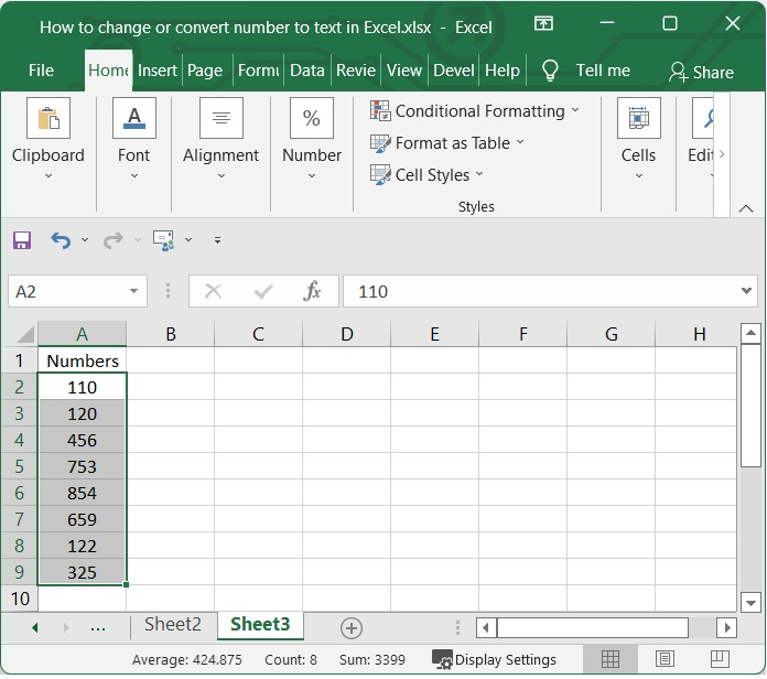 讓我們考慮上面給出的示例。要將單元格中的數字轉換為文字,請選擇這些數字。請參見下圖。