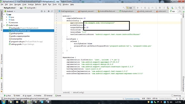 在 Android Studio 底部,有一個“執行重構按鈕”。點選它。現在開啟您的 build.gradle,如下所示 -