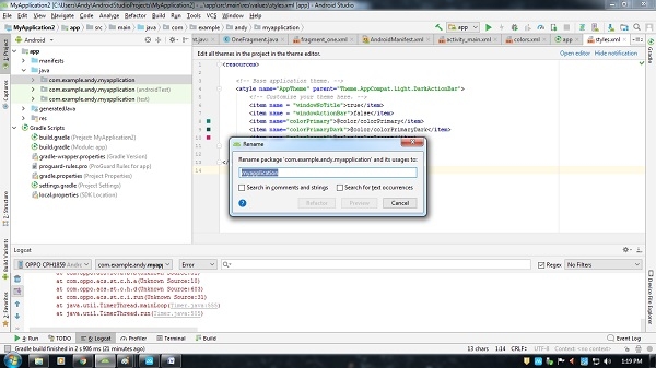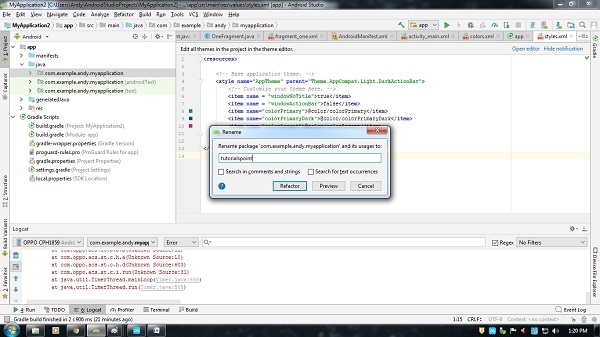 點選您的包名稱(在源樹中)->右鍵單擊-->重構->重新命名,如下所示 -