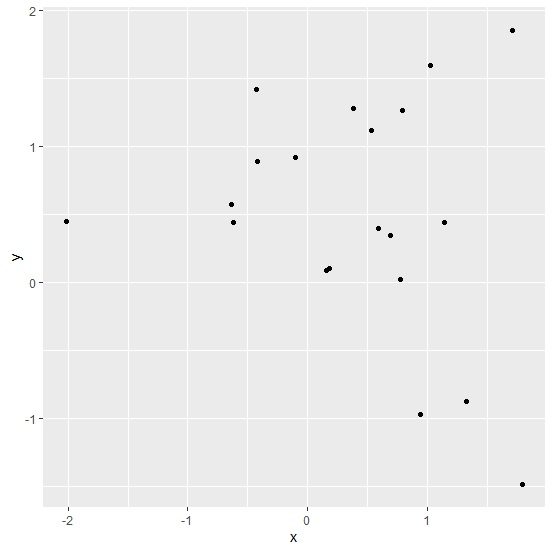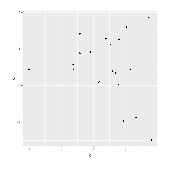 > set.seed(1) > x<-rnorm(20,0.2) > y<-rnorm(20,0.5) > df<-data.frame(x,y)