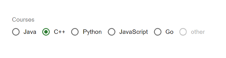 單選按鈕是表單中的一種元素,允許使用者從一組互斥的選擇中選擇一個選項。它們顯示為按鈕,可以處於選中(已選中)或未選中(未選中)狀態。當一組中的一個單選按鈕被選中時,該組中的任何其他單選按鈕都會自動取消選中,確保任何給定時間只能選擇一個選項。