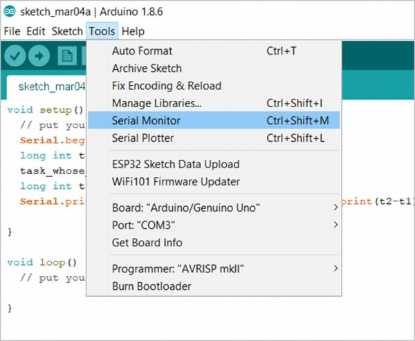 確保有開發板連線到你的電腦/筆記本,否則序列監視器將不會開啟。此外,確保埠對應於連線的開發板。