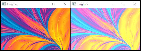 brighter = original + Scalar(80, 80, 80);//adding integer value to change the brightness//