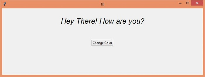 在本示例中,我們將透過定義回撥函式修改 Tkinter 標籤的顏色。可以透過按鈕啟用該函式,該按鈕會強制標籤更改顏色。