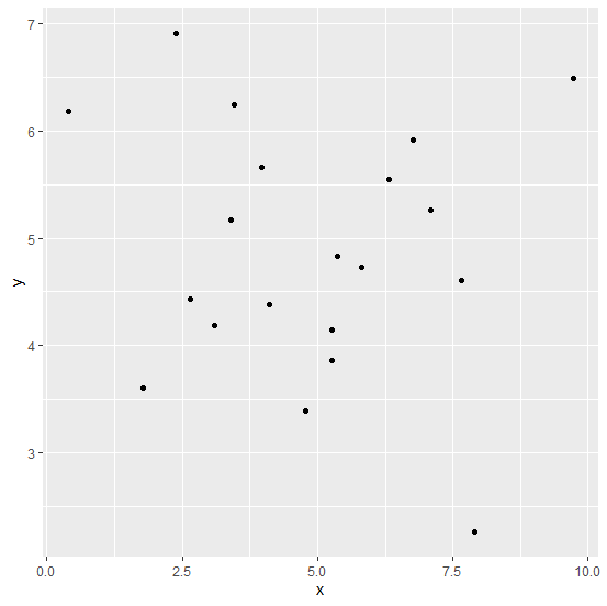x<−rnorm(20,5,2) y<−rnorm(20,5,1.25) df<−data.frame(x,y) df