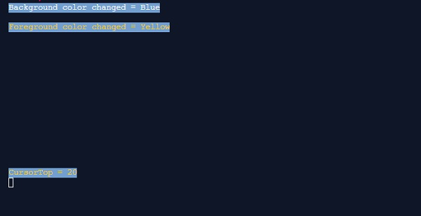 Foreground color changed = "+Console.ForegroundColor);