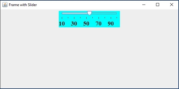 JSlider slider = new JSlider(JSlider.HORIZONTAL, 0, 100, 55); slider.setMinorTickSpacing(10); slider.setMajorTickSpacing(20); slider.setPaintTicks(true); slider.setPaintLabels(true);