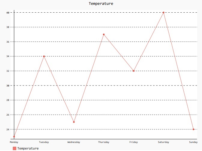 line_chart.add('Temperature', [23,34,25,37,32,40,24])