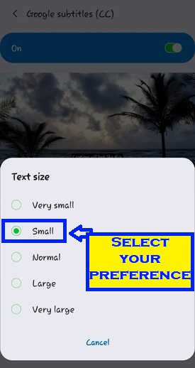 在此頁面上,只需點選“文字大小”,您就可以從各種不同的選項中進行選擇。您可以選擇超小和超大尺寸。