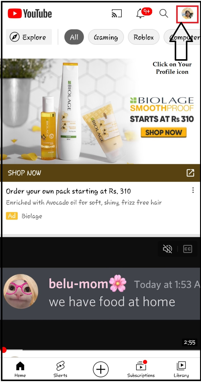 開啟 YouTube 應用,然後點選您的個人資料圖片。
