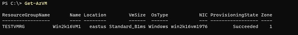 Get-AzVM -ResourceGroupName TestVMRG -Status