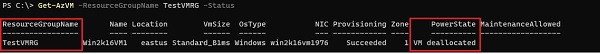 以上命令將檢索資源組 TestVMRG 中所有 VM 的電源狀態。